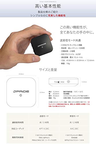 JPT1と比較して価格が低いにもかかわらず、「送信モード」や「受信モード」の切り替えなどJPT1とほぼ同じ機能を搭載しています。しかし、対応Bluetoothのバージョンが、「4.1+EDR」までとなっておりますので、使用するワイヤレスイヤホンによっては接続できない可能性もあります。
