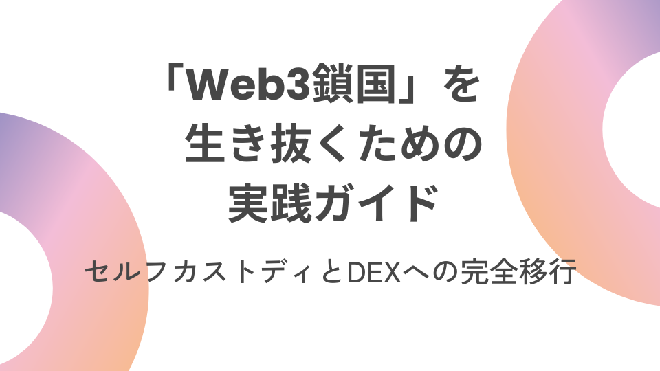 「Web3鎖国」を生き抜くための実践ガイド:セルフカストディとDEXへの完全移行